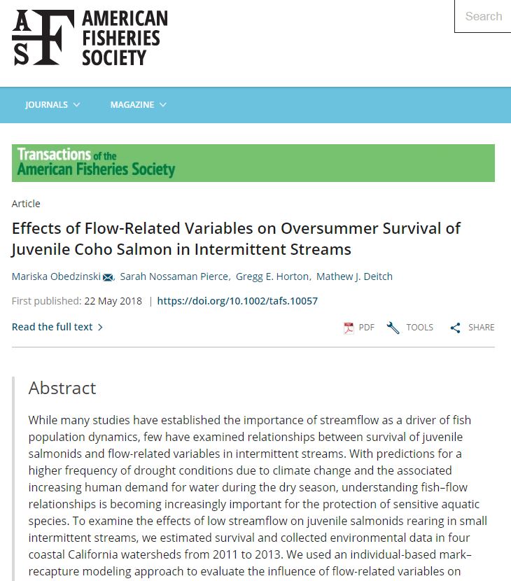 The Partnership developed streamflow and water use management plans for each watershed using the best available science. Streamflow, habitat, and fish monitoring data were used to correlate coho salmon survival and growth to streamflow and flow-related habitat parameters over the dry season. GIS cumulative impact models were created to help develop management objectives that ensure adequate protections for fish.